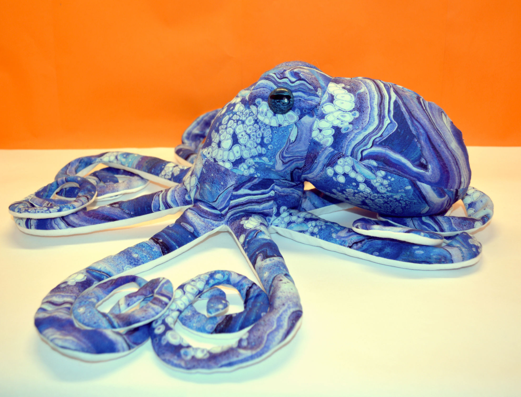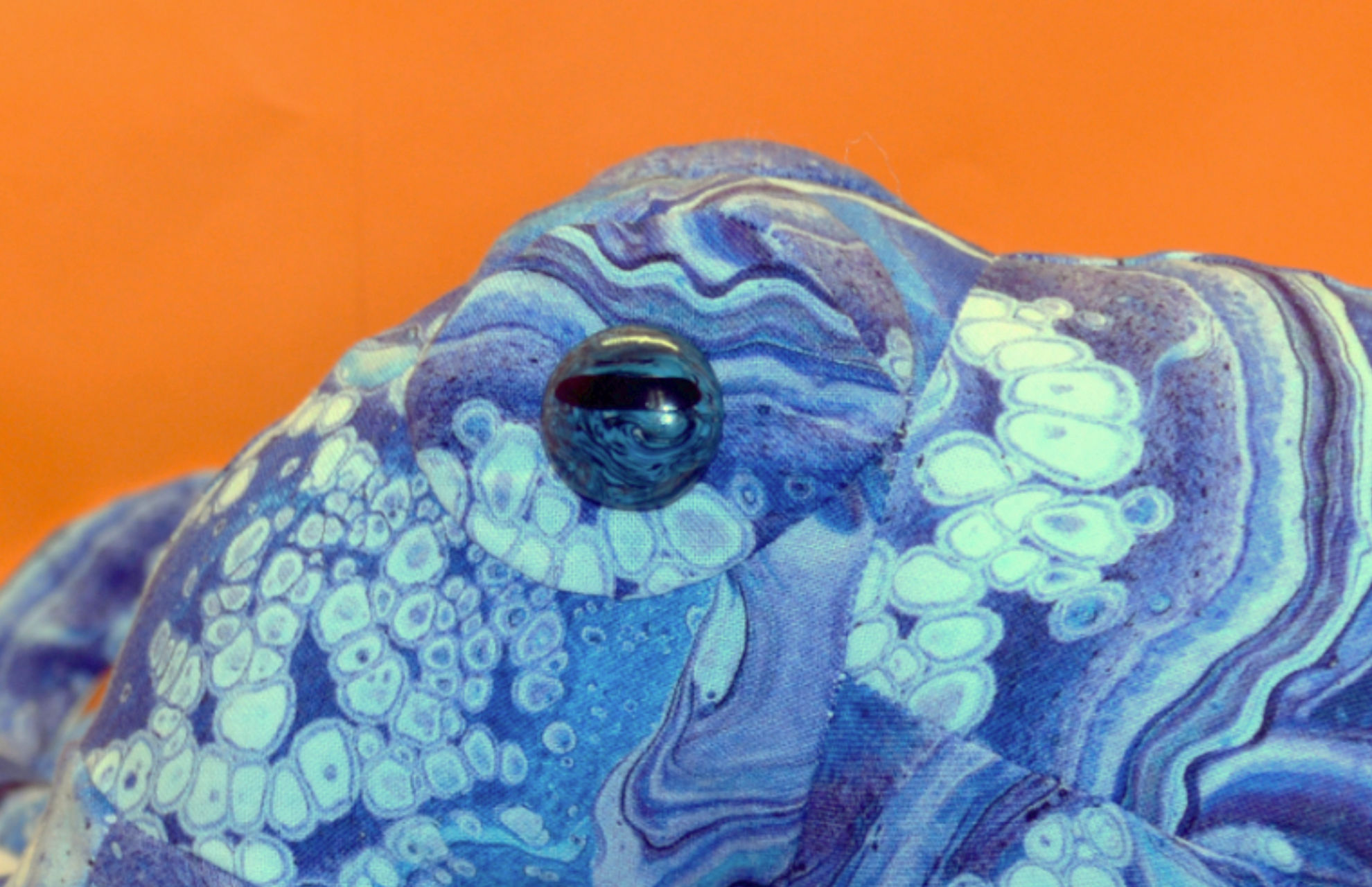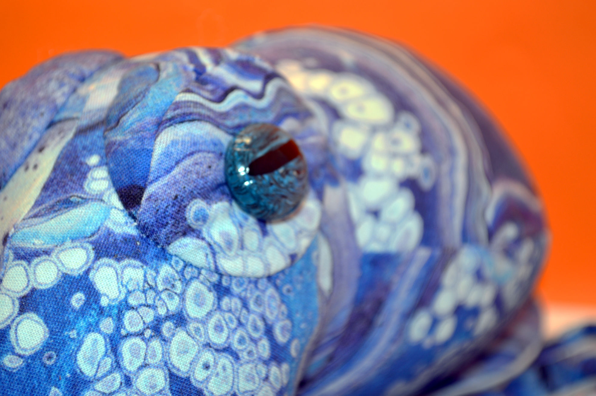 Material: Baumwollstoff, Fusion II SWISH Royal, Weiss, Fimoaugen (Eigenkreation), Premium Bastelwatte
