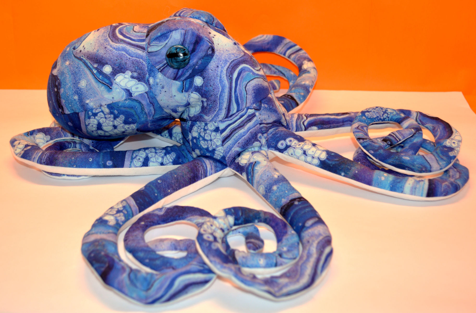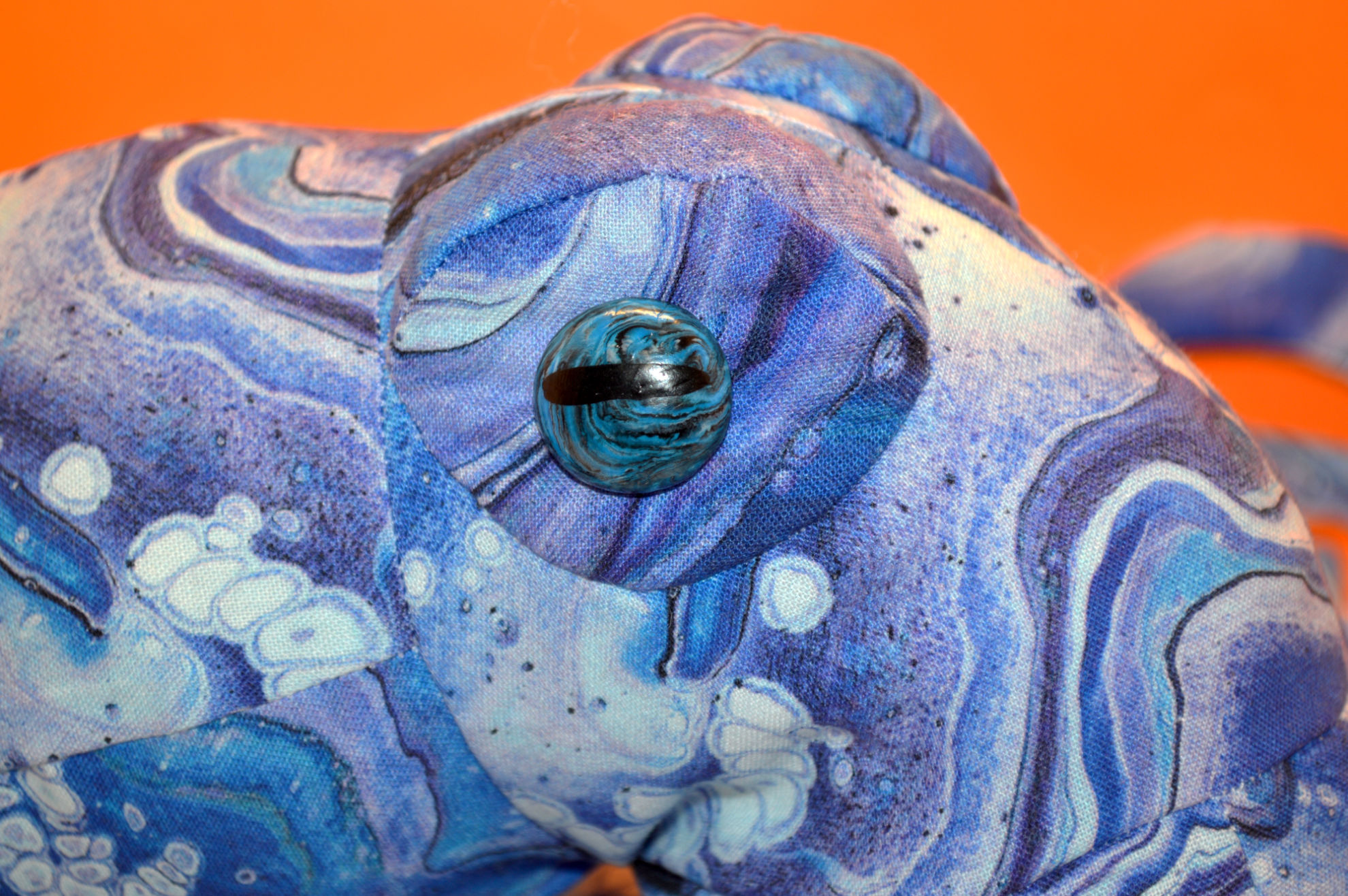 Material: Baumwollstoff, Fusion II SWISH Royal, Weiss, Fimoaugen (Eigenkreation), Premium Bastelwatte